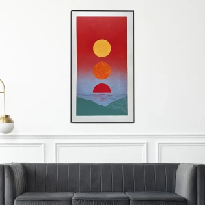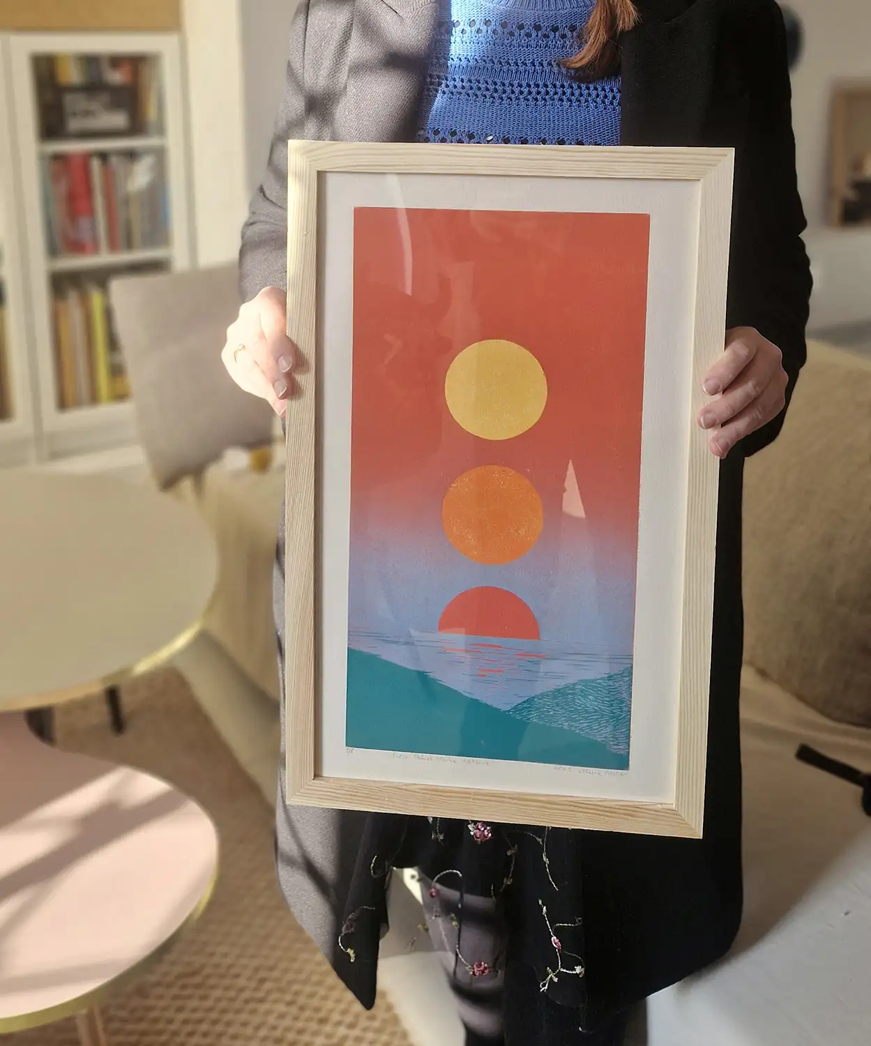 Grafika oprawiona w minimalistyczną drewnianą ramę ze szkłem