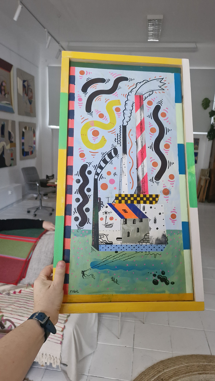 | Technika ⓘ | akryl na desce, markery akrylowe oraz markery olejne |