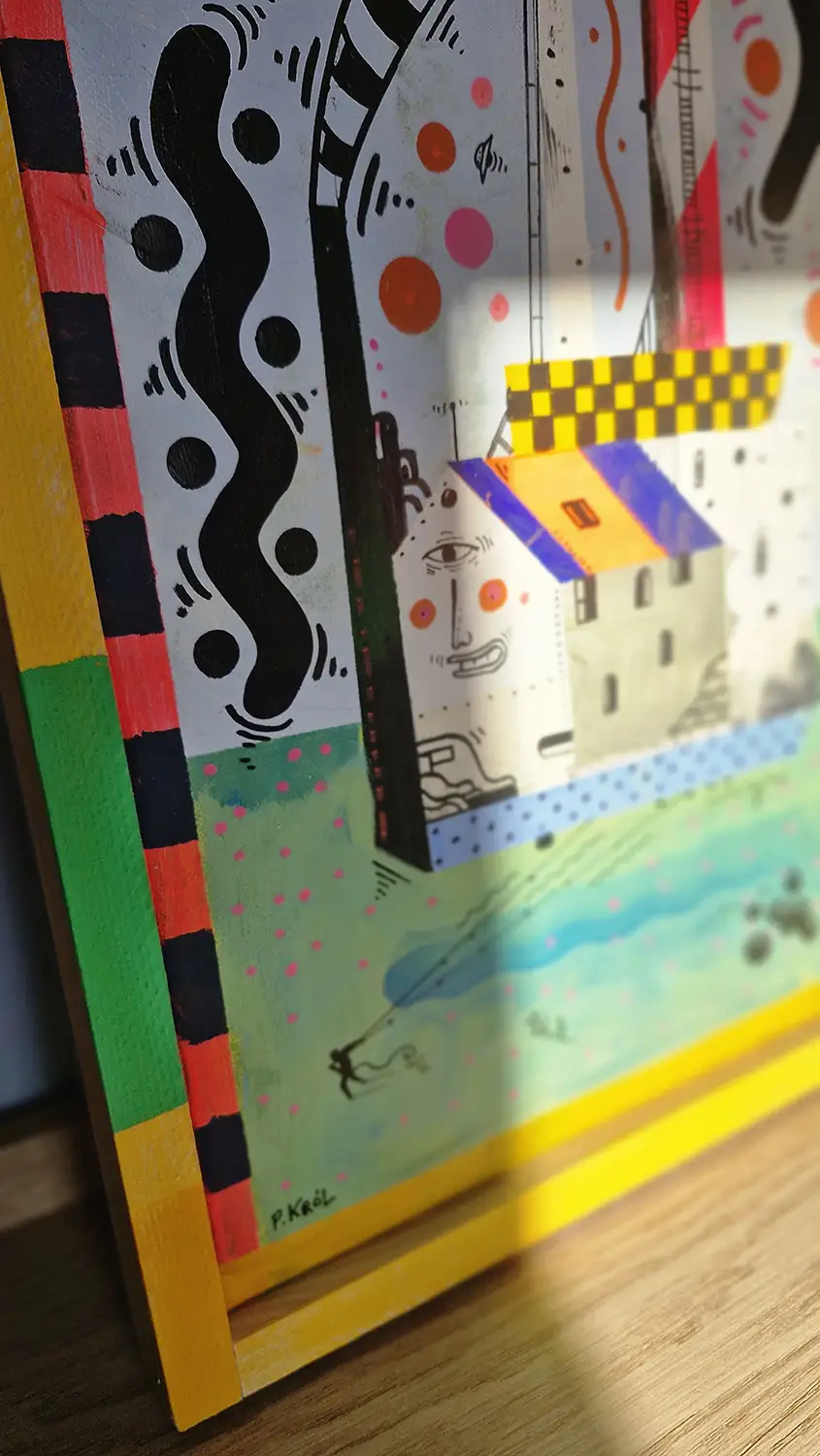 | Dodatkowe informacje | Obraz oprawiony w autorską, wielobarwną, drewnianą ramę |