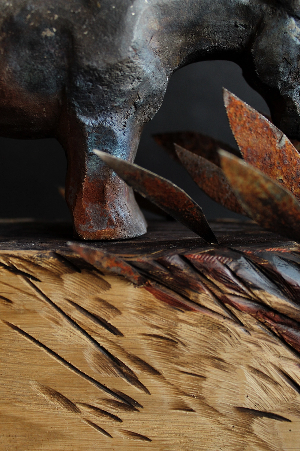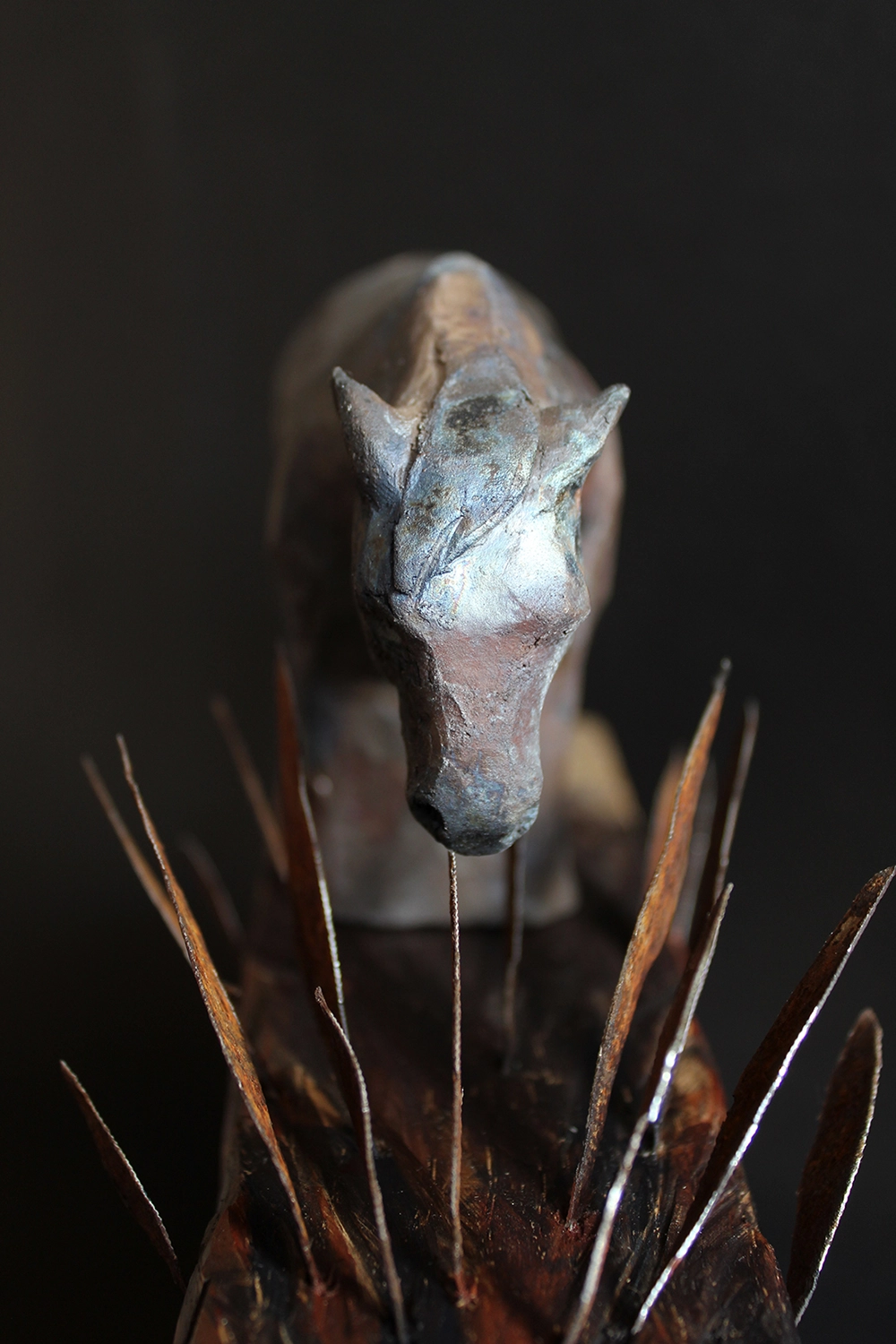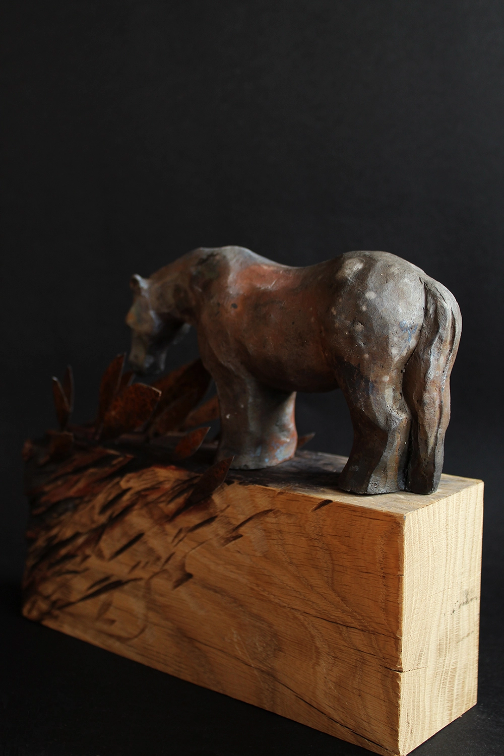 | Dodatkowe informacje | zeźba ceramiczna, podstawa dębowa z elementami metalu, wypał saggar |